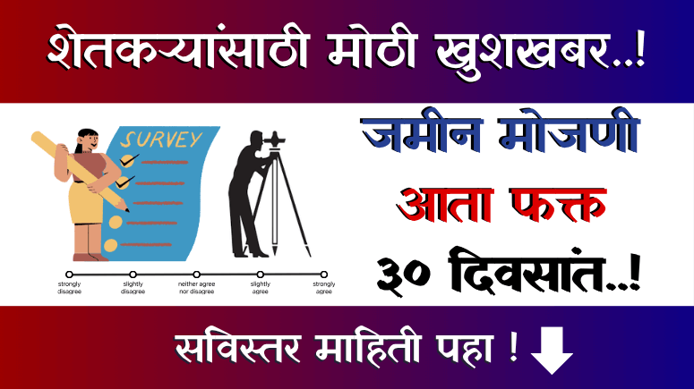 जमीन मोजणी (Jameen Mozani) ही प्रक्रिया अनेक शेतकरी, जमीनमालक आणि सामान्य नागरिकांसाठी अत्यंत महत्त्वाची असते. पूर्वी ही प्रक्रिया पूर्ण होण्यासाठी ५-६ महिने लागायचे; परंतु आता महाराष्ट्र सरकारने महसूल विभागामार्फत नवा निर्णय घेतला असून मोजणी केवळ ३० दिवसांत पूर्ण केली जाणार आहे. या उपक्रमामुळे हजारो प्रलंबित प्रकरणांना गती मिळणार असून, पारदर्शकतेसह अचूक मोजणी सुनिश्चित केली जाणार आहे.