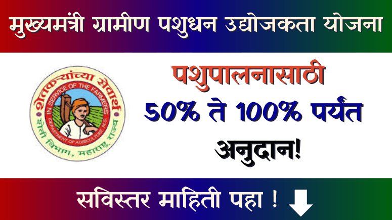 ग्रामीण भागातील शेतकरी आणि पशुपालकांना आर्थिकदृष्ट्या सक्षम करण्यासाठी महाराष्ट्र शासनाने मुख्यमंत्री ग्रामीण पशुधन उद्योजकता योजना (Mukhyamantri Gramin Pashudhan Udyogakata Yojana) सुरू केली आहे. या योजनेचा मुख्य उद्देश म्हणजे ग्रामीण भागात पशुपालन व्यवसाय वाढवणे, आधुनिक तंत्रज्ञानाचा वापर वाढवणे आणि शेतकऱ्यांचे उत्पन्न वाढवणे.