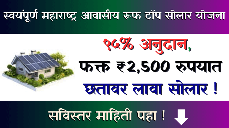 स्वयंपूर्ण महाराष्ट्र आवासीय रूफ टॉप सोलार योजना : ९५% अनुदान, फक्त ₹2,500 रुपयात छतावर सोलार लावा!