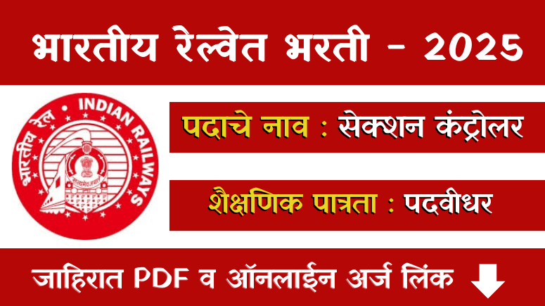 भारतीय रेल्वे मध्ये काम करण्याची इच्छा असणाऱ्या उमेदवारांसाठी महत्त्वाची बातमी आहे. भारतीय रेल्वे मध्ये सेक्शन कंट्रोलर पदांसाठी (RRB Section Controller Bharti 2025) 368 जागांसाठी भरती सुरू आहे. इच्छुक उमेदवार ऑनलाइन अर्ज करू शकतात.