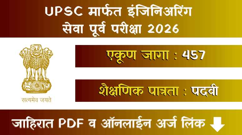 UPSC मार्फत इंजिनिअरिंग सेवा पूर्व परीक्षा 2026 – UPSC ESE Bharti 2026: